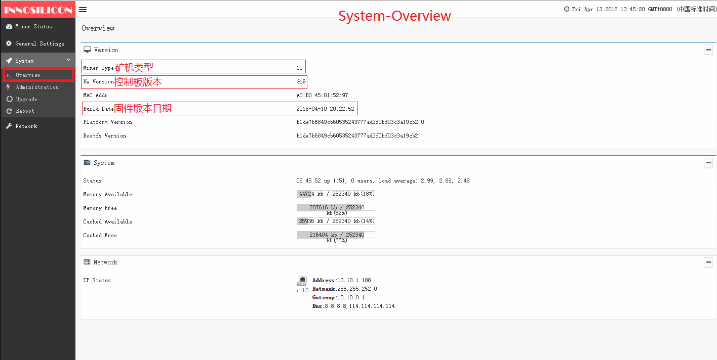 If the firmware build date is before 2017.11.24, you must upgrade through TF card.If the firmware build date is 2017.11.24 or later, you can upgrade on the webpage of the miner.